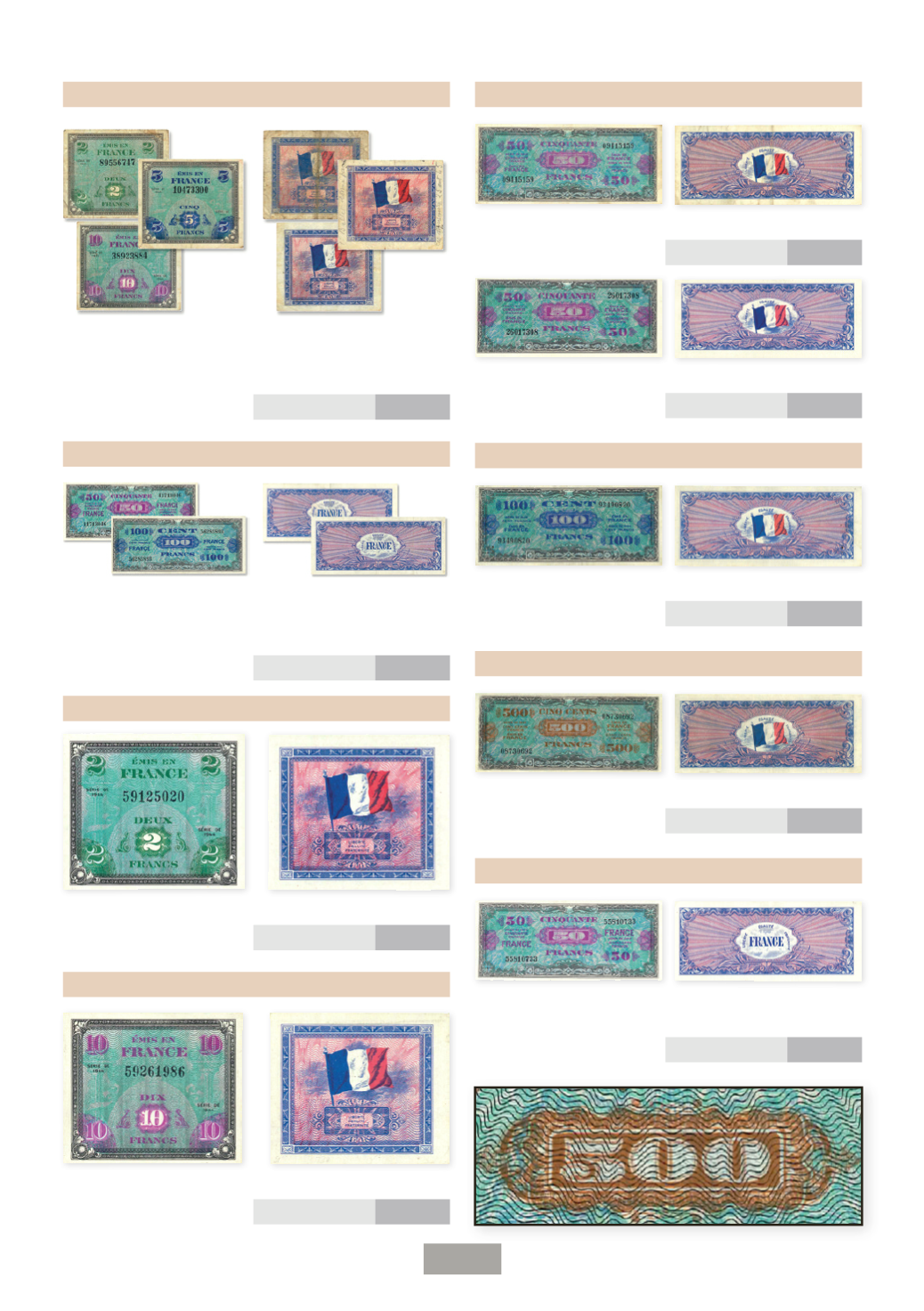 2 F Drapeau, 5 F Drapeau, 10 F