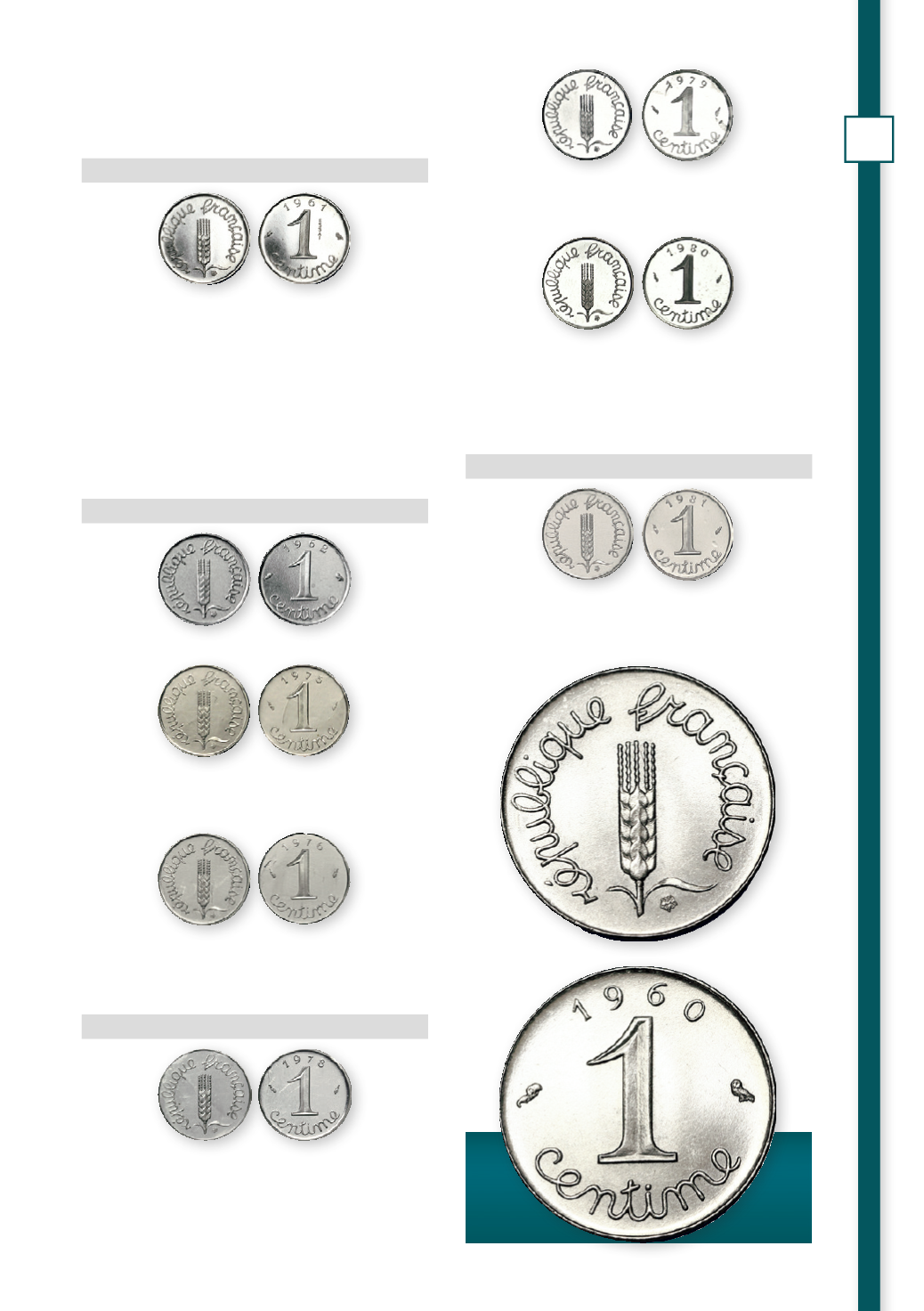 intérêt sur des coins variés de l’essai de 1 centime Épi (voir