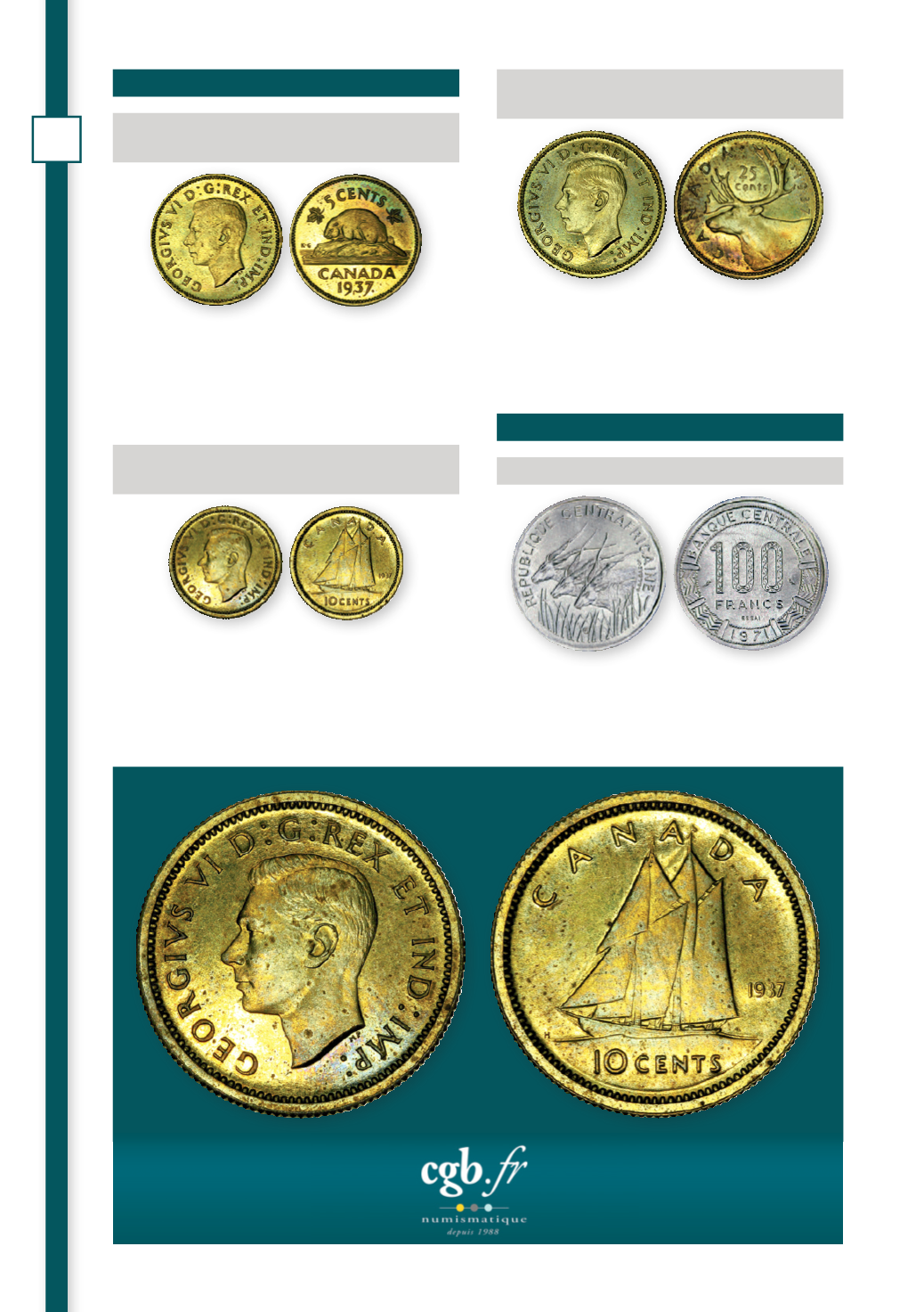 circulation de 5 Cents en nickel, de 10 et 25 Cents en argentL