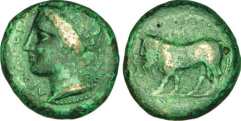 . Tête féminine (Tanit) à droite, les cheveux